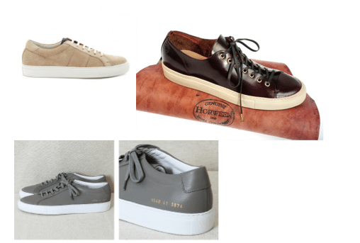 Débutant, prenez des couleurs simples, unies avec des design sobres. Common Projects, National Standard, Wing+Horns, Baron Papillom, Veja x French Trotters, Twins for peace, Sawa.