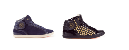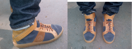 Les sneakers Sawa : la première paire est issue de la collaboration avec Public Enemy en cuir et denim. Imprimé léopard sur la languette. La deuxième est de la ligne principale de la marque en cuir. Design sobre et simple très facile à porter. Elles existent en cuir pleine fleur, suédé et canvas. Respectivement 85, 85 et 75euros. Les sneakers de la collab sont à 95euros.