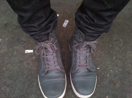 Le premier avec des high de chez Aldo modèle Rondel, un des plus épuré que j’ai trouvé dans l’entrée de gamme à 69euros. Malheureusement ils n’en font plus et c’est bien dommage… Le jean brut passe car les sneakers sont basiques et simples dans leur design.
