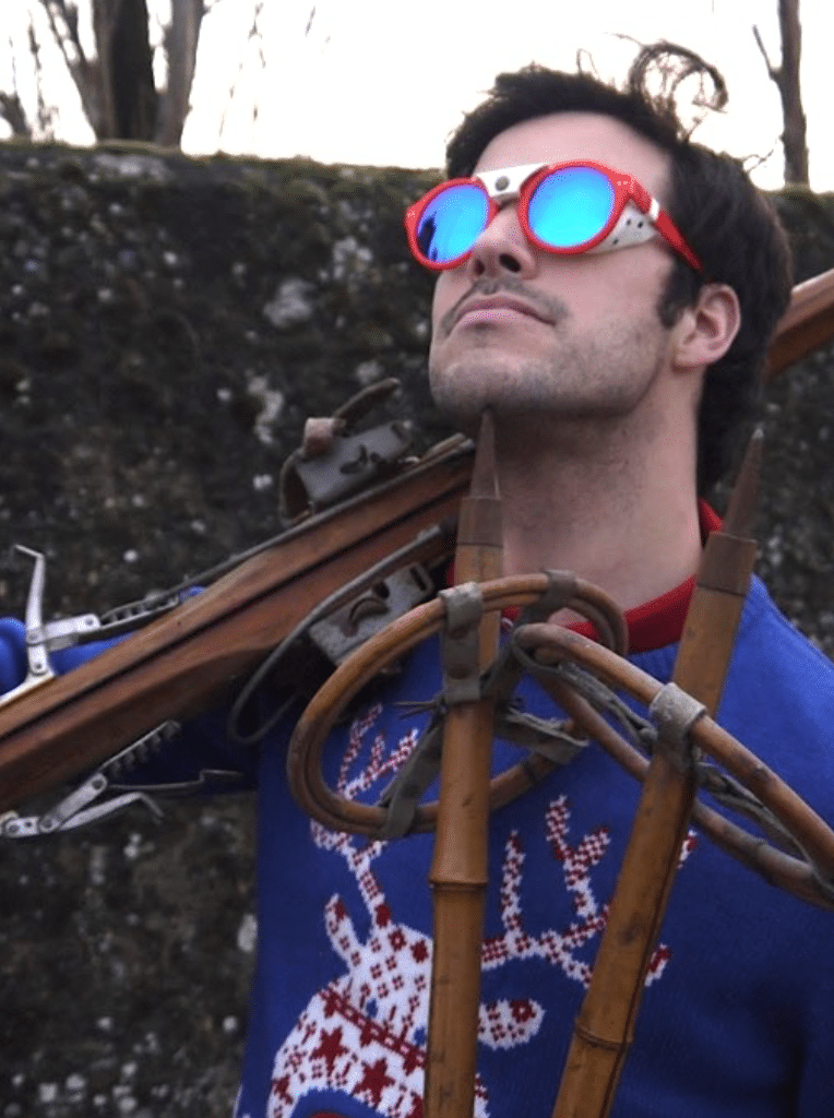 “Décembre 2013. Neige fraîche et grand beau, Camille et Nicolas s’apprêtent à faire leur trace dans la station des Brasses. Damned ! Les lunettes de soleil sont restées à la maison. Dans cette petite station de HauteBSavoie, un seul magasin de location est encore ouvert. Là, ils dénichent une caisse remplie de lunettes de glacier façon vieille école, coques en cuir et cordons inclus. De quoi faire remonter d’un coup tous les souvenirs d’enfance : le goût des premiers flocons, l’appréhension du premier téléski, les aprèsBmidis de luge en famille, les séjours en classe de neige, le fumet des skis que l’on refarte au fond des boutiques de location, les barres chocolatées glissées dans le fuseau. Pour sauver leur journée, ils s’en achètent deux paires colorées.”