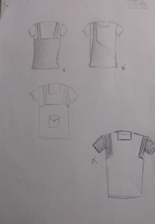 L’essentiel du travail s’est concentré sur la coupe. Le tee-shirt, long, devait être suffisamment ample pour éviter l’effet tube/tunique tout en restant confortable et facile.
