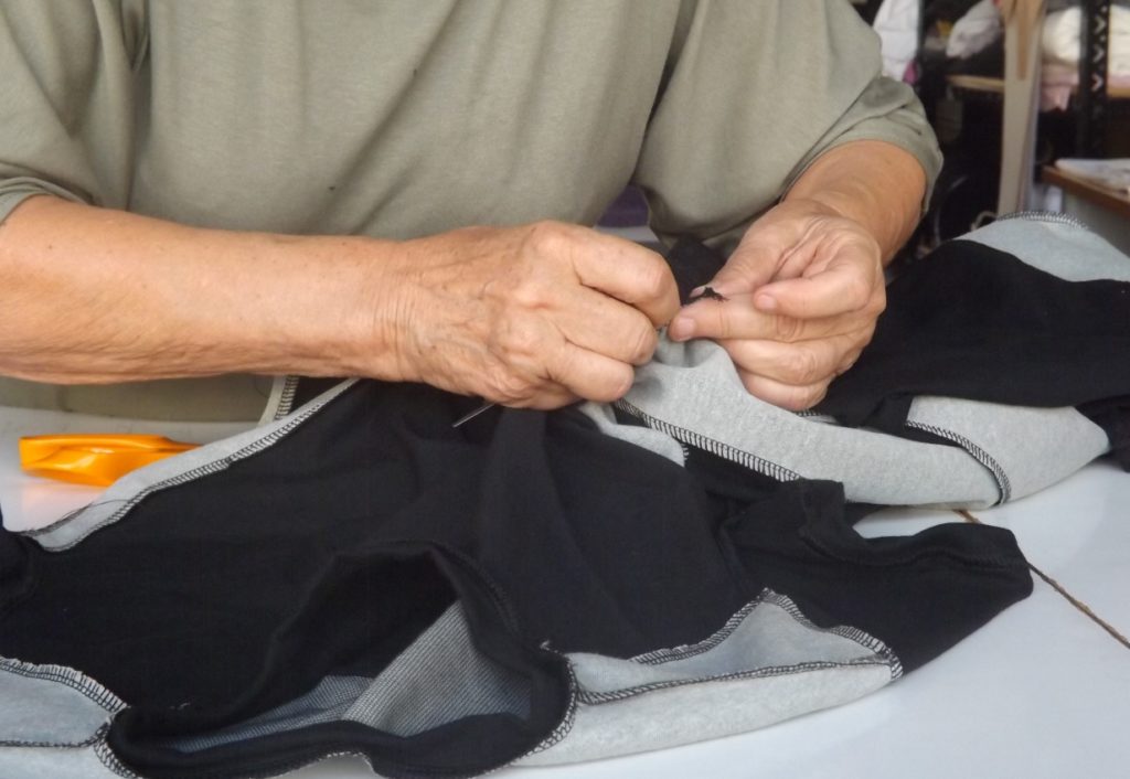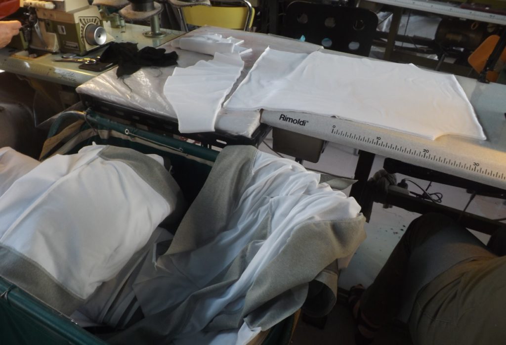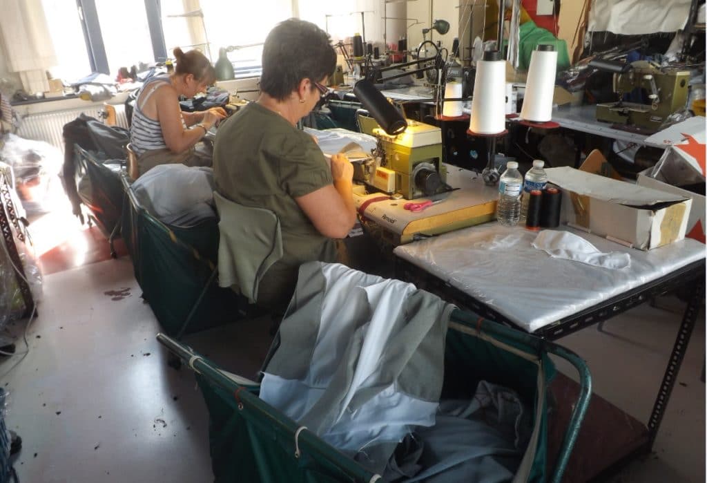 L’usine avec laquelle Sébastien travaille depuis ses débuts est parisienne : nous avons pu la visiter, discuter avec ses fondateurs, et observer les ouvriers réaliser nos T-shirts. Toutes les pièces sont contrôlées, les finitions impeccables, et le repiquage, à l’intérieur, se fait à la main. Ce sont des opérations coûteuses (en temps) mais qui nous permettent d’être certains de la durabilité et de la qualité de nos produits.