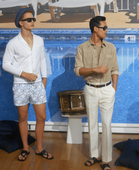 On remarquera également que tous les mannequins portent leur chaussures sans chaussettes pour souligner le coté estival de la collection.